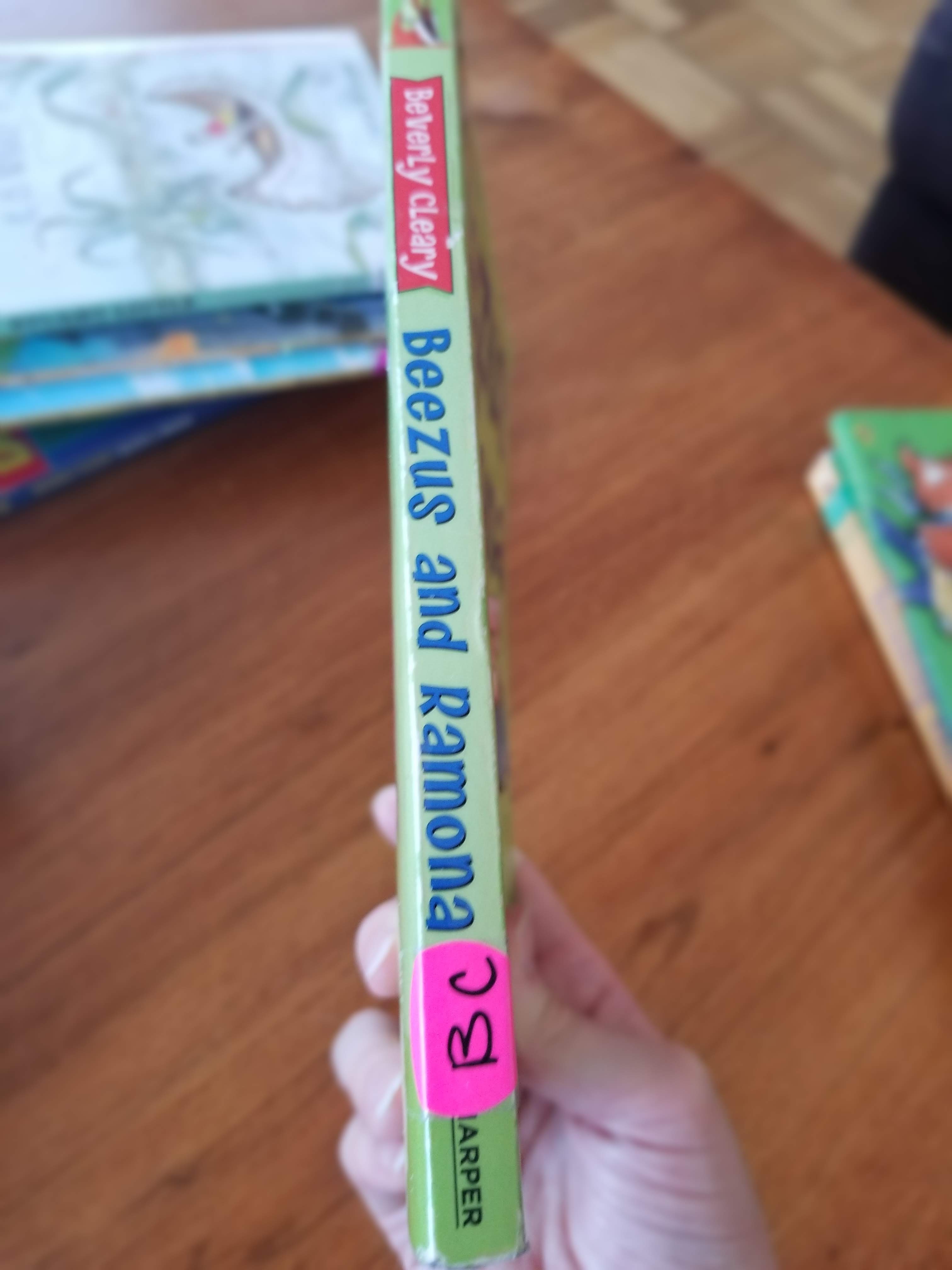 3. For authors or series collections, come up with an acronym and add that to each book label. For instance, I wrote “BC” on Bevery Cleary books and “RD” on Roald Dahl books. For Chronicles of Narnia books, I added a “CoN”.