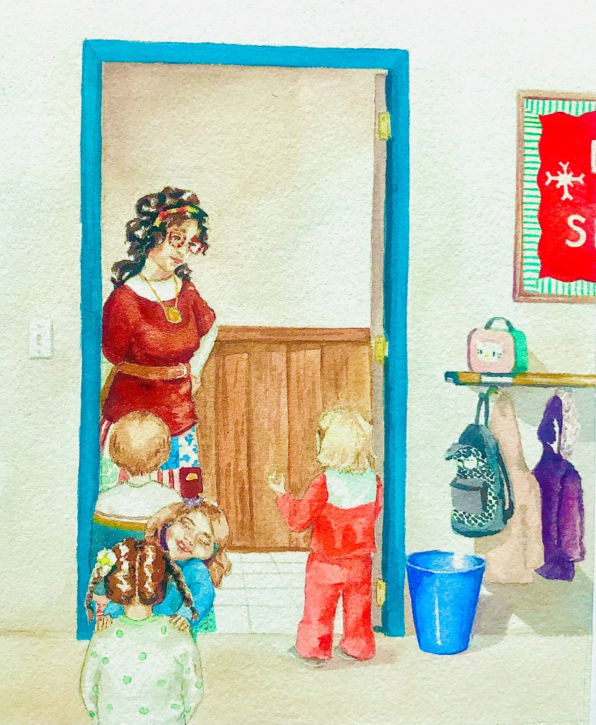 Usually Sarah uses colored pencil for her illustrations, but she has done a bit with watercolor too. I love how vibrant the colors are in these illustrations, from a book she is calling Twinkle Toes.