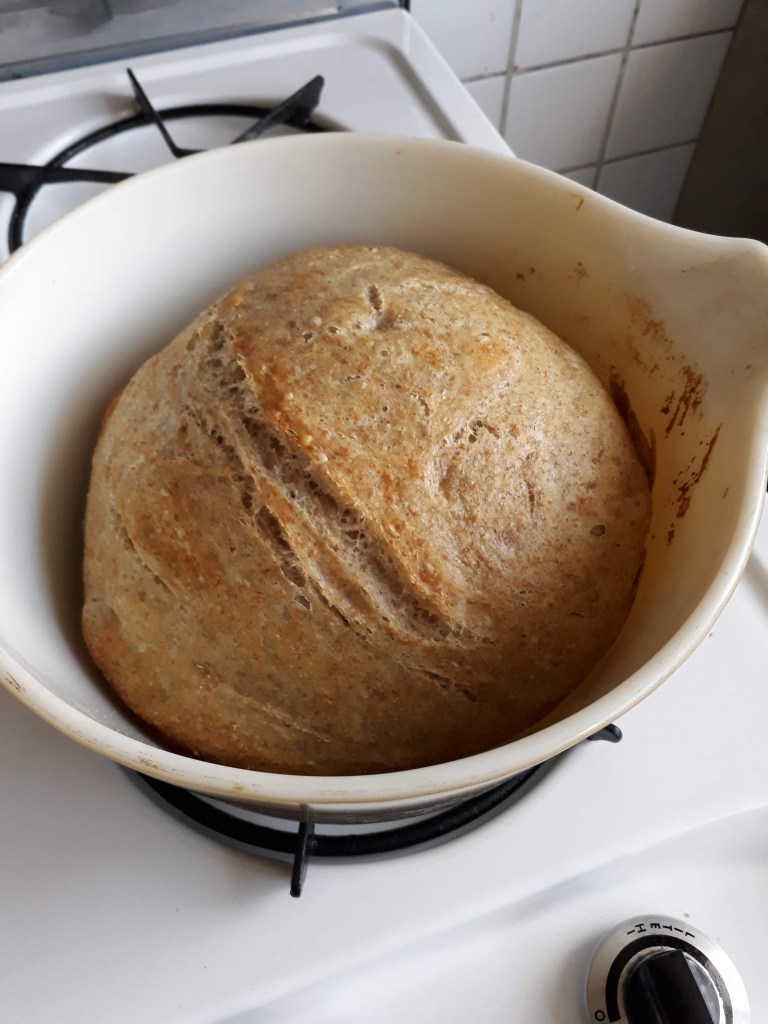 I’ve been experimenting with no-knead bread since the pandemic started. I haven’t quite found the right amount of flour for high-altitude, but it’s good enough that I’ll keep trying.