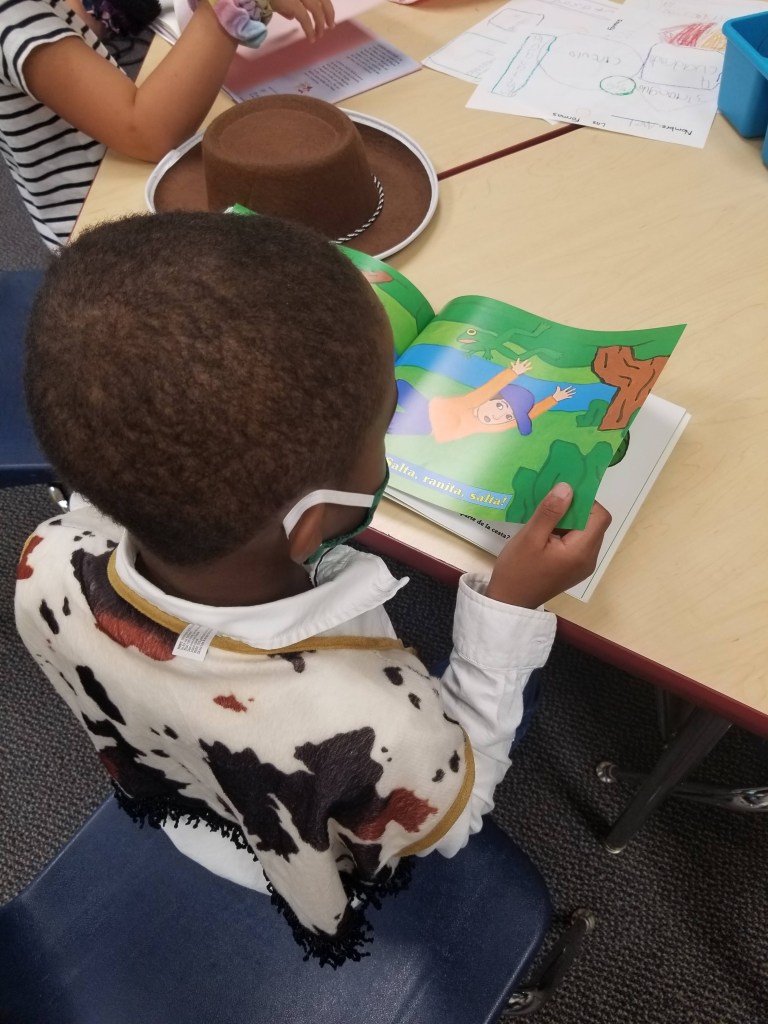 Like when the kids finish early and know they can grab a (Spanish) book to read while the others finish, and I hear a student re-reading a book we read a few weeks ago – and remembering what the book says (“Salta, ranita, salta!”).