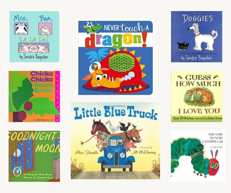 - Sandra Boynton books – the illustrations aren’t beautiful artwork, but they are engaging. The books are humorous, keep my interest (enough) even after multiple readings, and I know plenty of kiddos who love these books. I like that she adds in additional words beyond the main content (numbers, opposites, animals, etc.) Doggies and Moo, Baa, La La La! are favorites at our house.